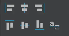 区别在于,上面的图标通过扩展尺寸(来对齐)。而这两个图标并不会扩展尺寸,而是将视图平移至互相对齐。另外值得注意的是,这只是在 Design 编辑器中设定了值,如果你运行到设备上你是无法获得在 Design 编辑器中显示的效果的。你需要自己去构建约束。但其实你可以先通过使用这些图标来对齐视图,这样可以节省很多时间,然后再构建约束,这样你就可以在设备上得到适当的效果。让我们来看一下点击这些图标之后会发生什么吧。