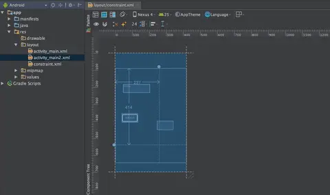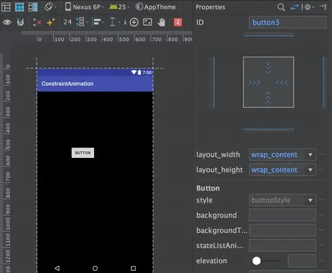 上图中有一个按钮,我为该按钮构建了左侧值为 24 dp 的约束。之后我将值修改为 207 dp,最后我通过点击小圆点将约束移除。有一点值得注意的是,这些值不是约束,而是外边距。你只能在构建约束后设置该值。