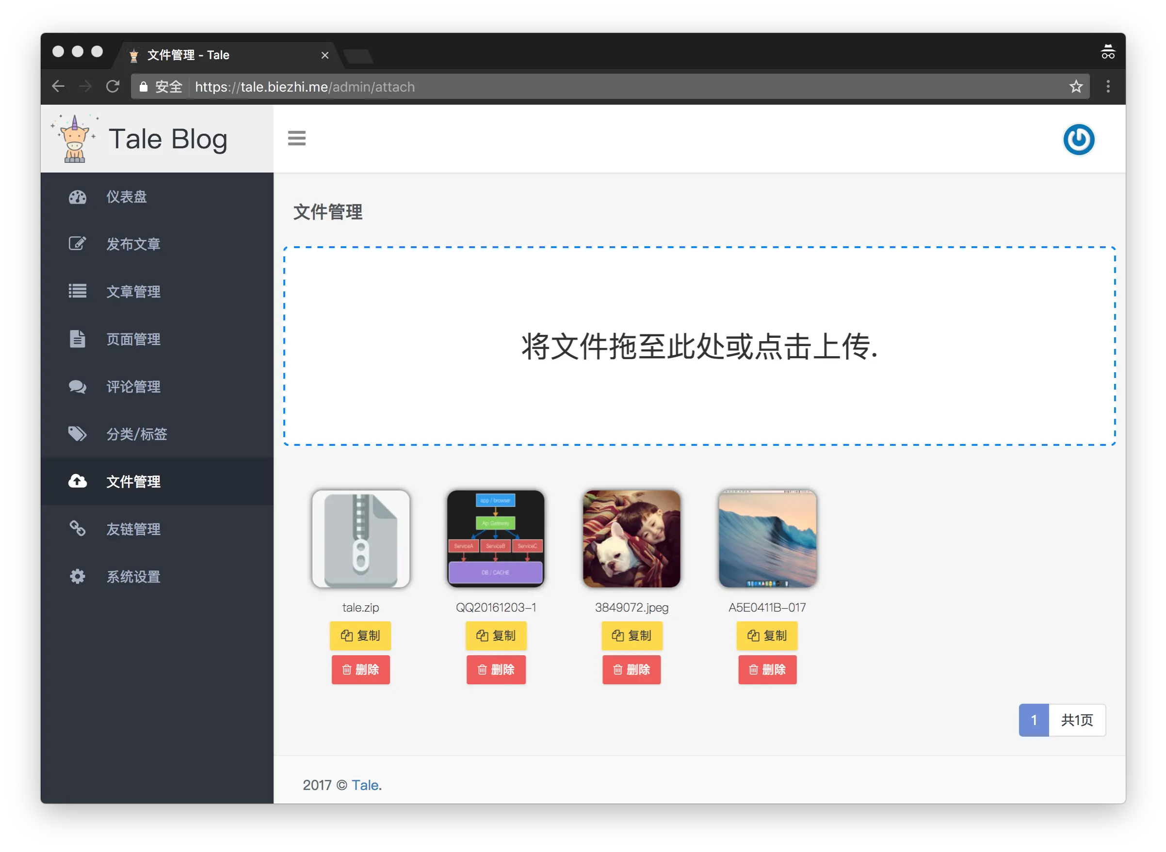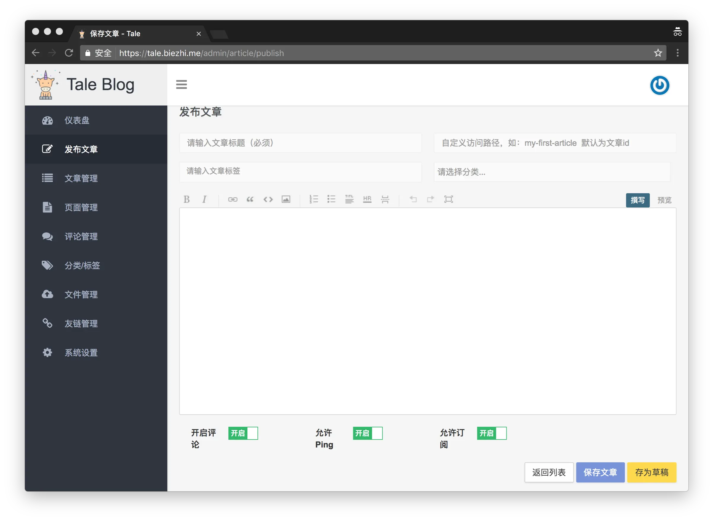 Tale 使用了轻量级mvc框架 Blade 开发,默认主题使用了漂亮的 pinghsu,如果觉得这个项目不错,请为它点赞支持。
