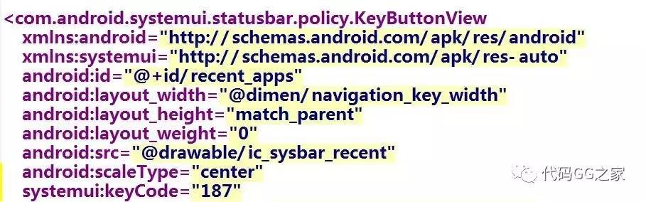 我们来到NavigationBarInflaterView.java 里面(加载了各个button虚拟按键),对于RECENT,使用的layout为:recent_apps.xml