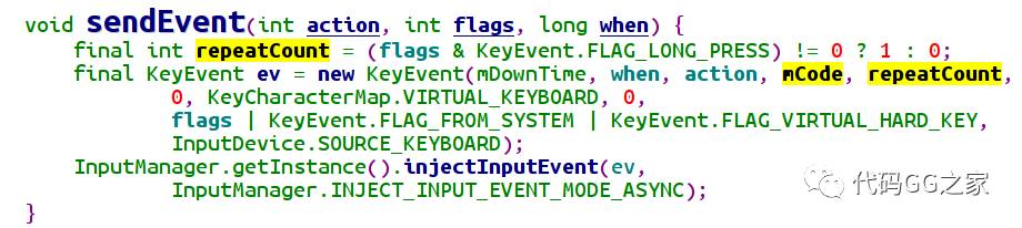 sendEvent 发送事件,这个关键方法,模拟了发送按键的动作