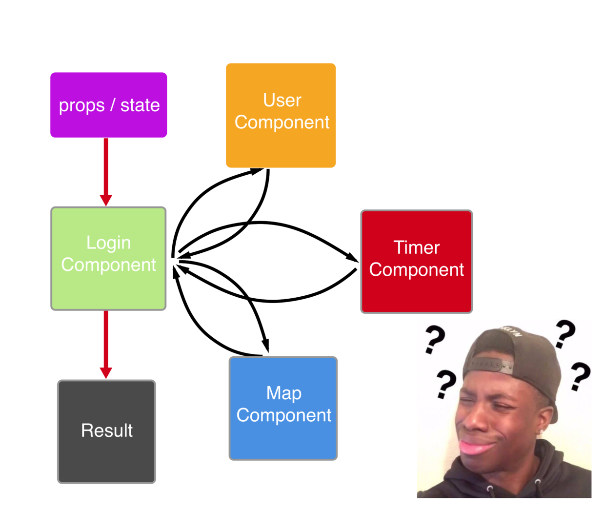 如果仅仅把登录状态的细小功能划分成一个元组件,那么外面想获取登录状态就直接调用这个组件就好。这种划分的粒度就非常细了。这样就会导致组件个数巨多。