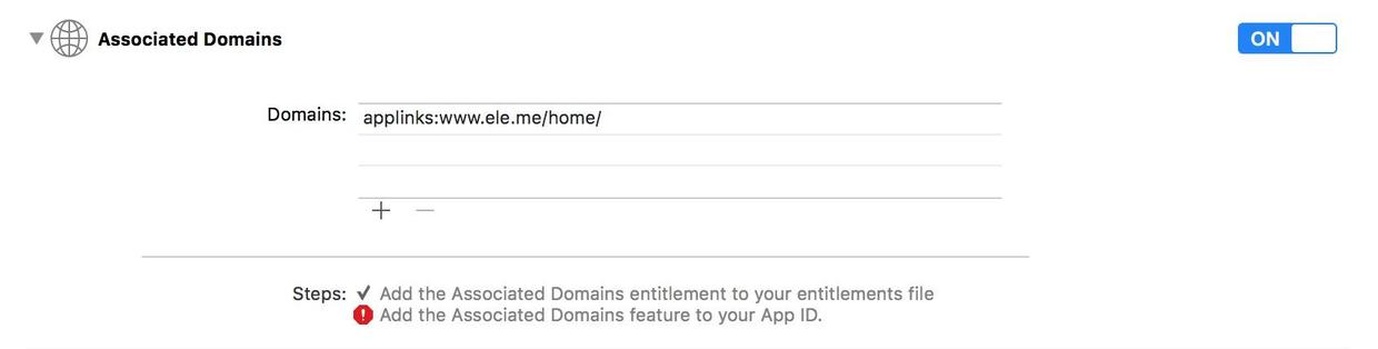1.App需要开启Associated Domains服务,并设置Domains,注意必须要applinks:开头。