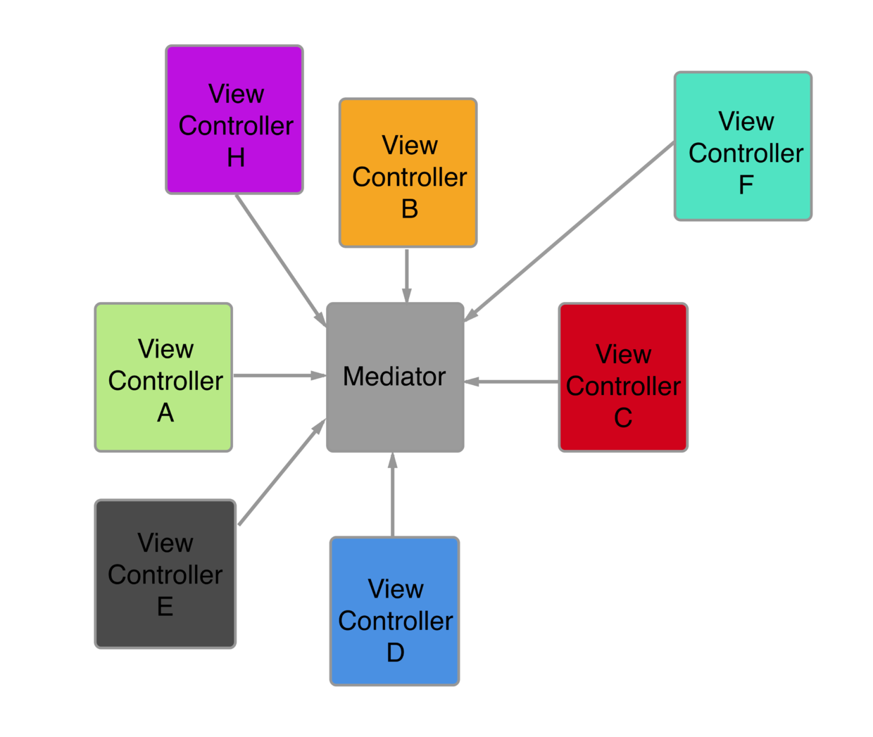 最终去掉了中间者Mediator对组件的依赖,各个组件之间互相不再依赖,组件间调用只依赖中间者Mediator,Mediator不依赖其他任何组件。