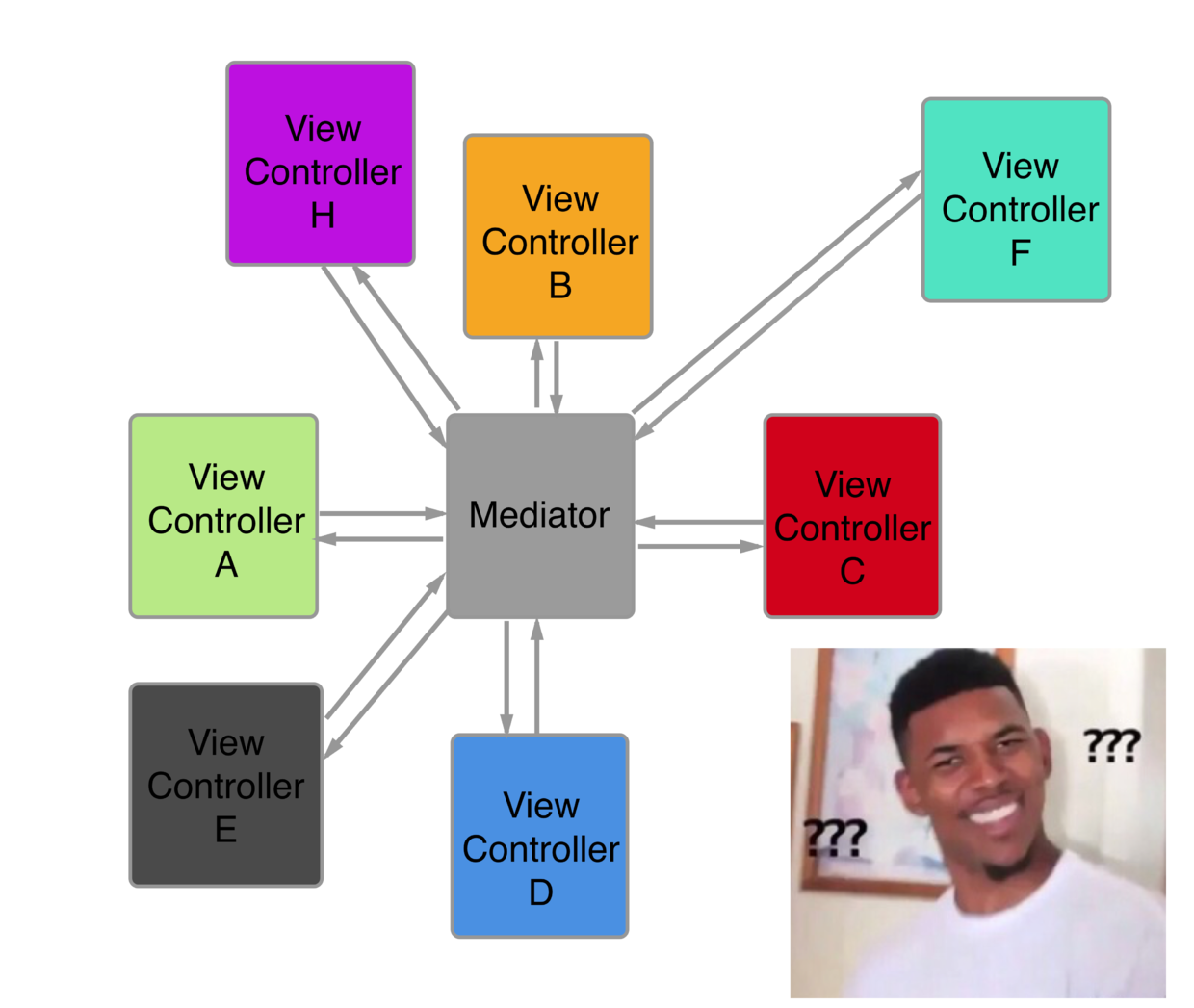 但是在实际开发过程中,不管是界面调用,组件间调用,在Mediator中需要定义很多方法。于是做作者又想出了建议我们用Category的方法,对Mediator的所有方法进行拆分,这样就就可以不会导致Mediator这个类过于庞大了。