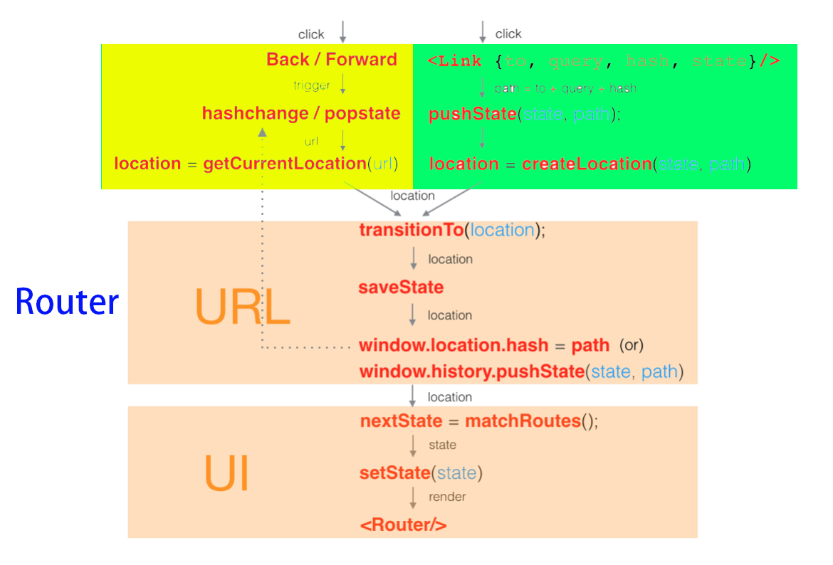 react-router通过传入的location到最终渲染新的UI,流程如下: