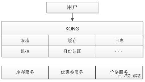 如在访问库存服务、优惠券服务、价格服务时之前都会做一些特殊处理,如限流、缓存、日志、请求统计。而这些处理几乎是所有服务都需要的,这不就是我们常说的AOP嘛,当我们服务多起来的时候,应该将这些通用处理集中到一个地方进行管理,如下图所示: