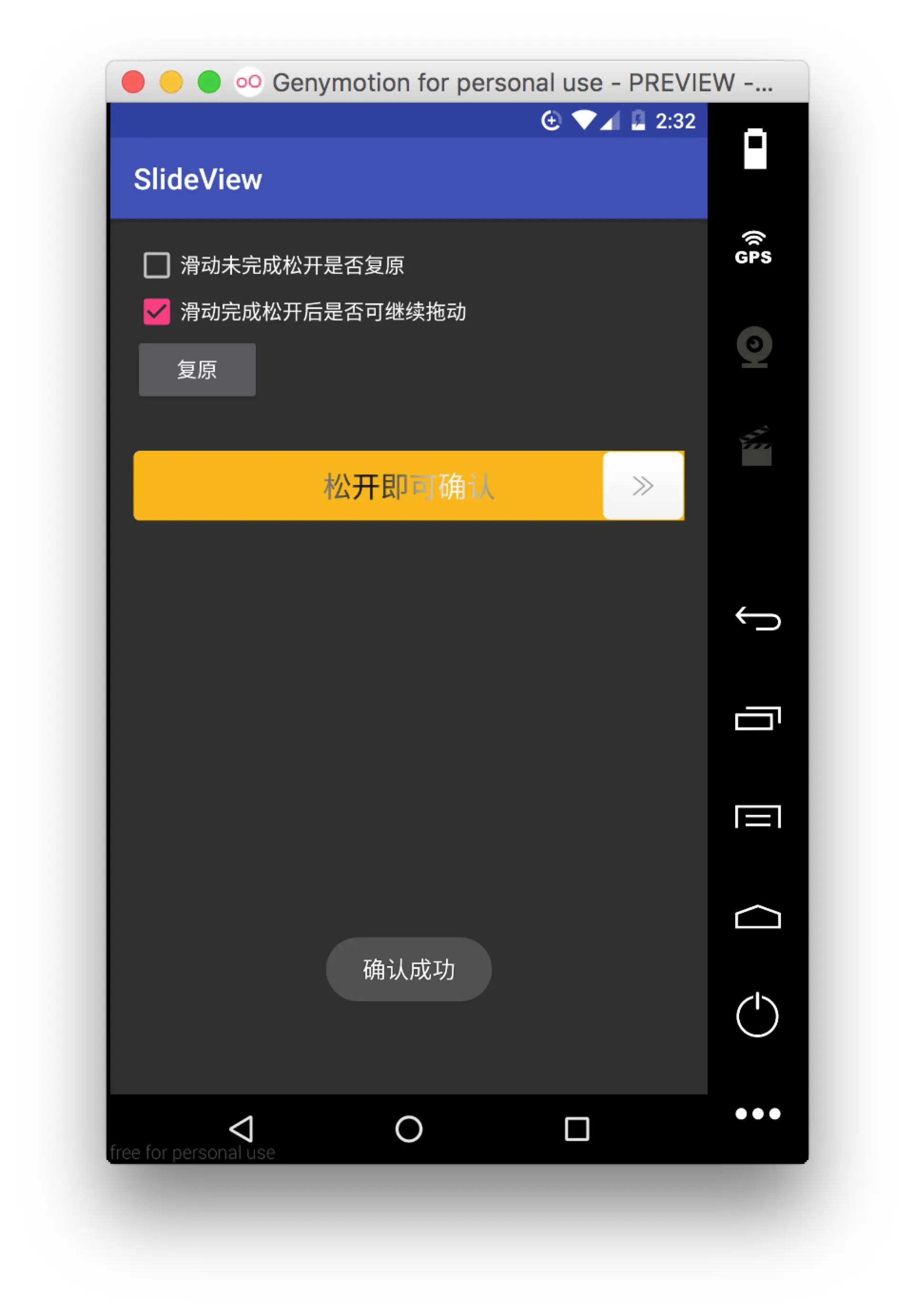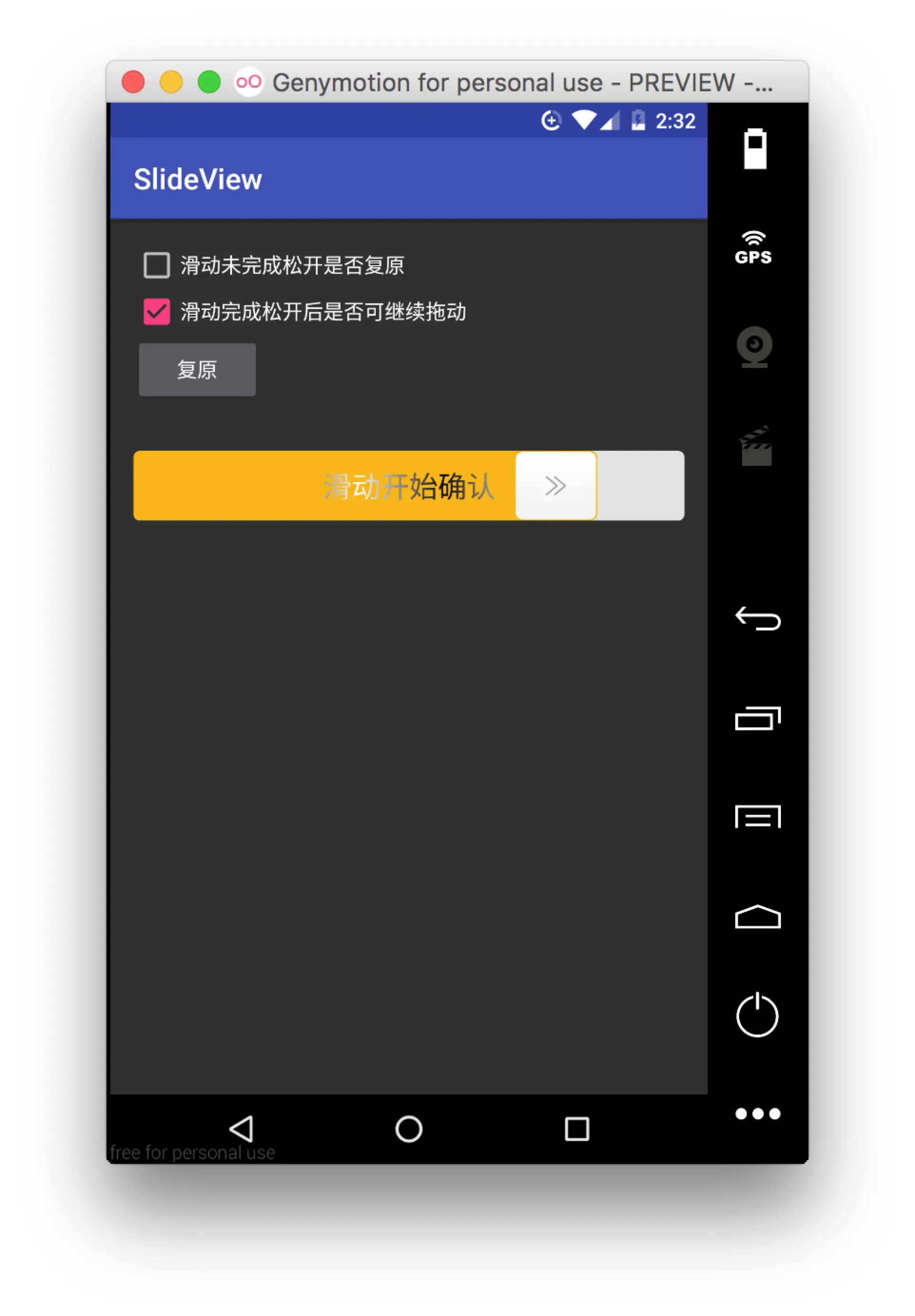 到目前为止,我们的SlideView就已经完成了。下面让我们看看使用的效果