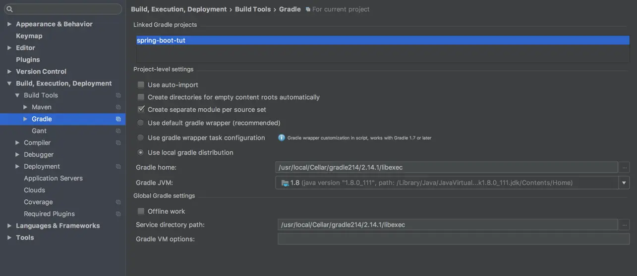 但下面我们要做的不是通过这种方式,而是手动的通过命令行方式创建。创建的是gradle工程,而不是maven的,原因呢是因为个人现在对于xml类型的配置文件比较无感;-),官方推荐使用gradle 2.14.1版本,请自行安装gradle。下面来建立一个gradle工程,其实步骤也不算太难: