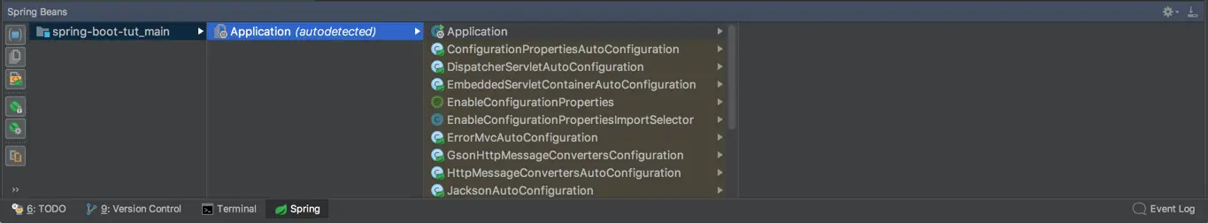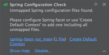 由于使用的是Spring框架,Spring工具窗口也是需要的,一般来说如果你安装了Spring插件的话,IDEA会自动探测到你的项目是基于Spring的。一般在你增加了Applicaiton入口后,会提示是否添加context。