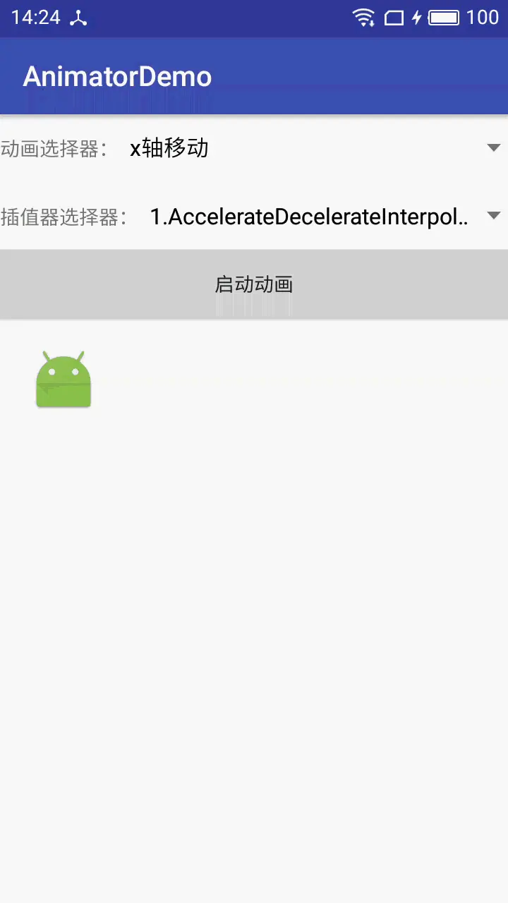 这个包裹类必须要有setter方法,因为Animator这个时间引擎正式通过计算值来设置view的属性而打到动画不断更新的目的。而getter方法可以不设置,但是假如传的value值只有一个,会默认把参数作为结束值,此时你必须设置setter方法,动画系统会把setter中的值设为起始值。