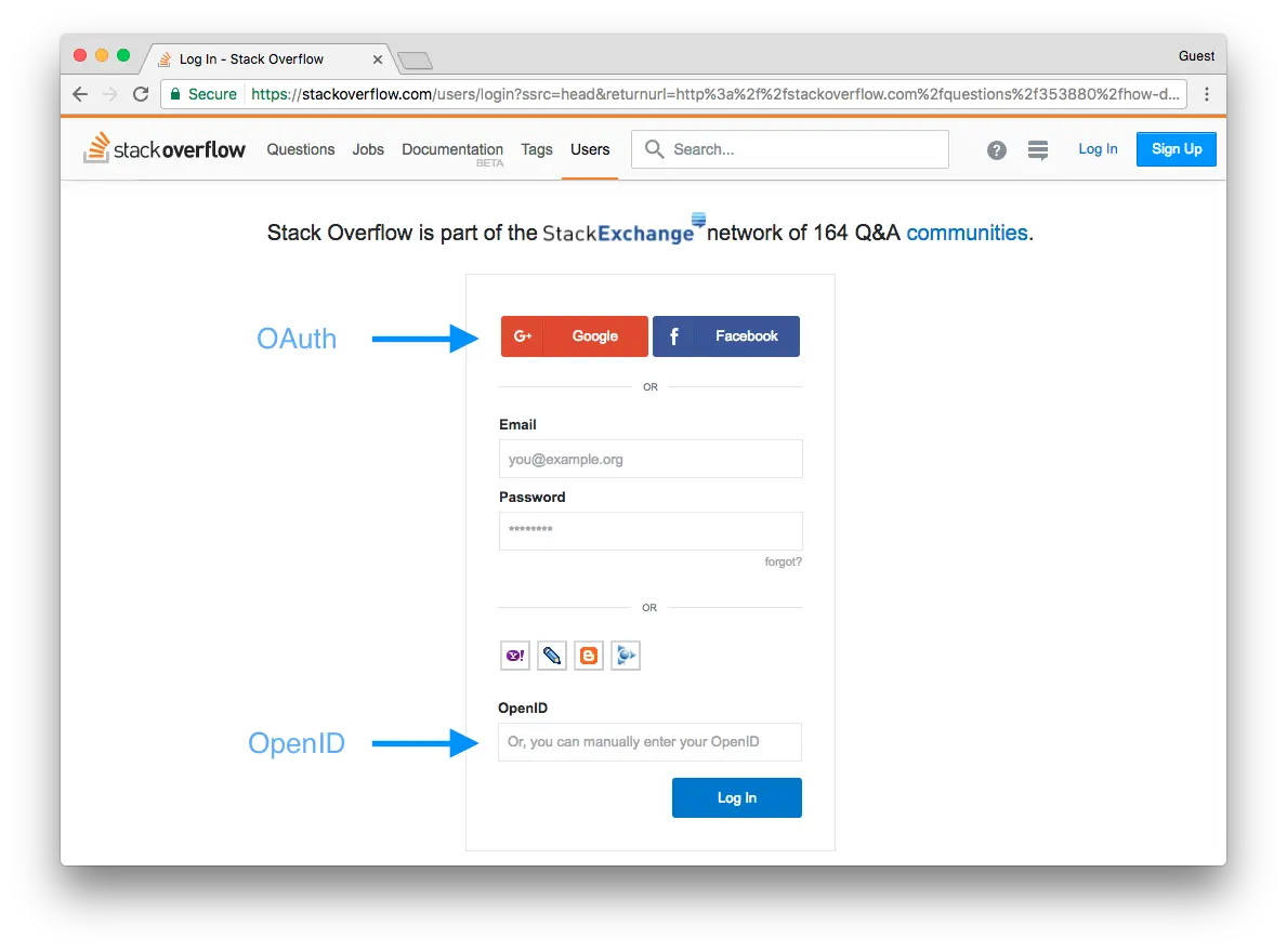 Here's an image of Stack Overflow's login page, which offers many different authentication methods: