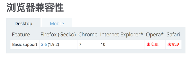 当然了,这东西的兼容性有点捉鸡: IE10+, 移动端可以快乐的使用。