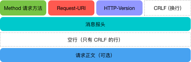 - 请求行:包含请求方法、请求地址和 HTTP 协议版本