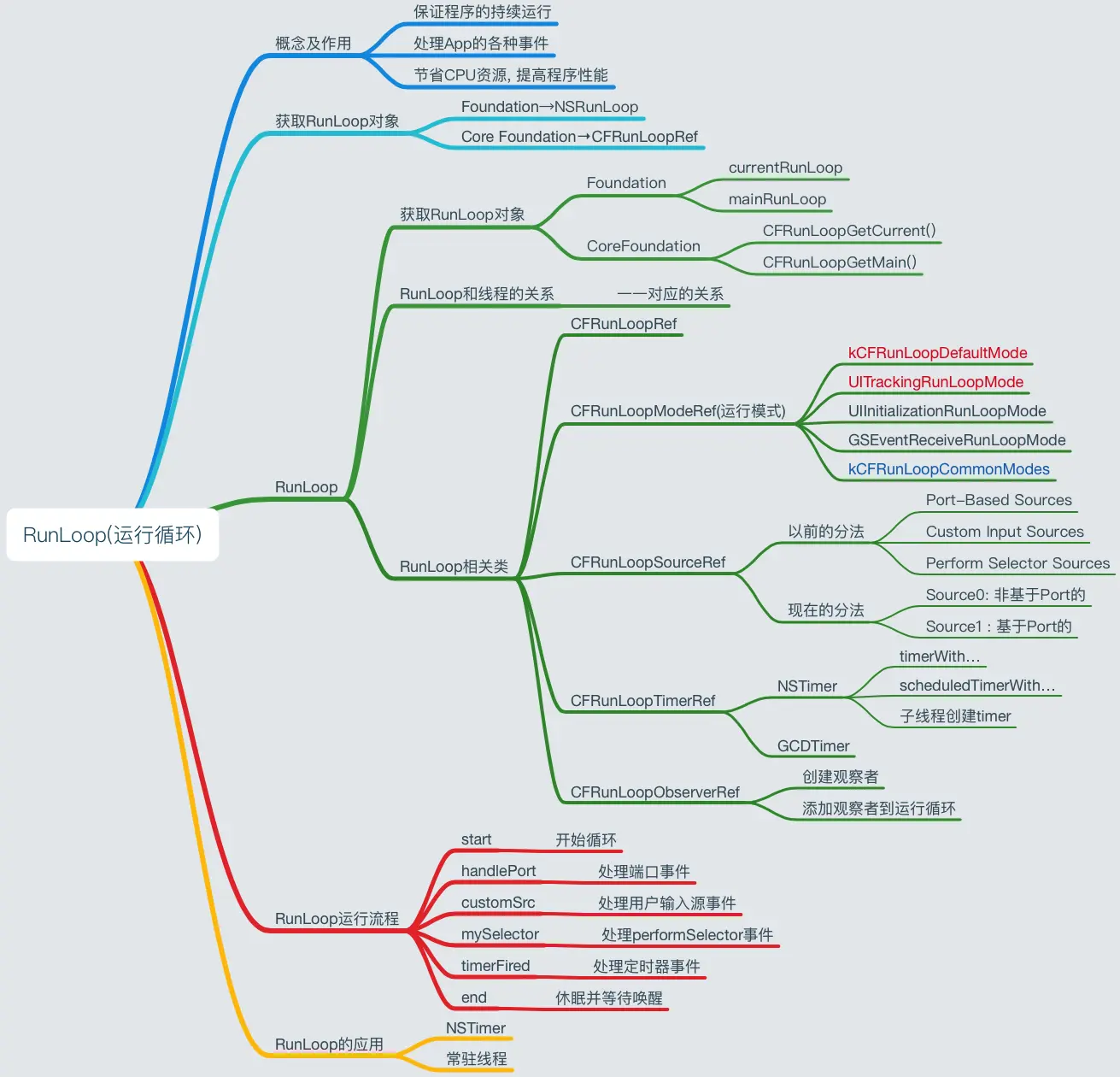 先浏览一下RunLoop知识点的大致框架, 这也是本文即将要说明的: