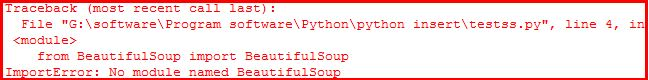 当你成功安装BeautifulSoup 4库后,“from BeautifulSoup import BeautifulSoup”可能会遇到该错误。