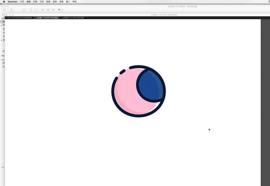 2:将填充色改为粉色,复制两次使用路经查找器切割出一个圆的一小部做为圆的阴影,再用同样的方法做出一个高光。