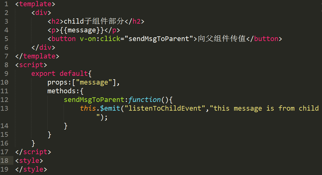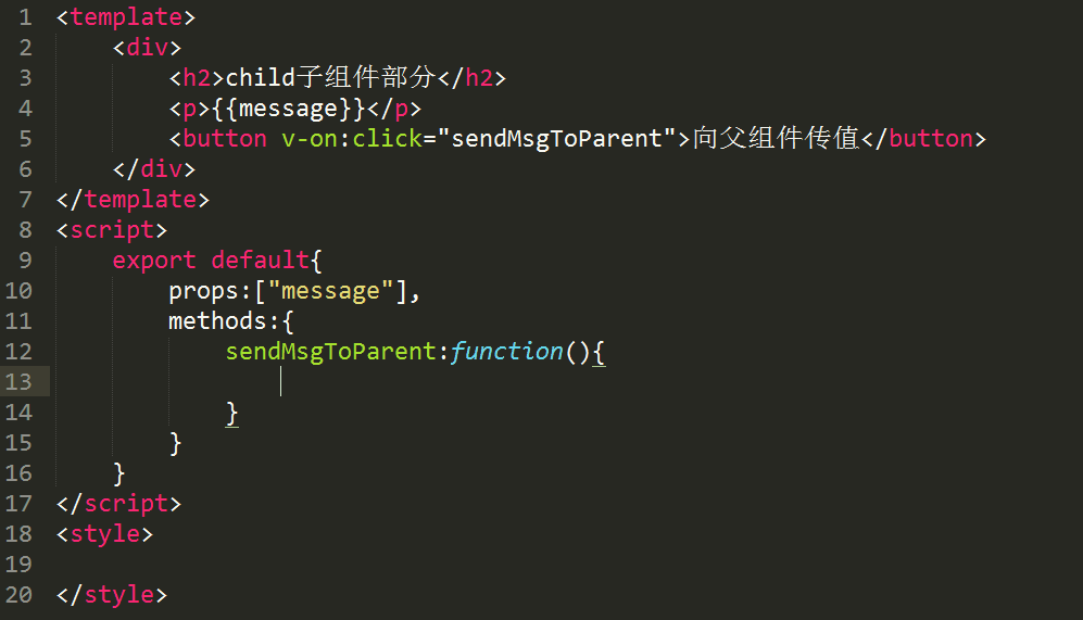 1.在子组件中创建一个按钮,给按钮绑定一个点击事件