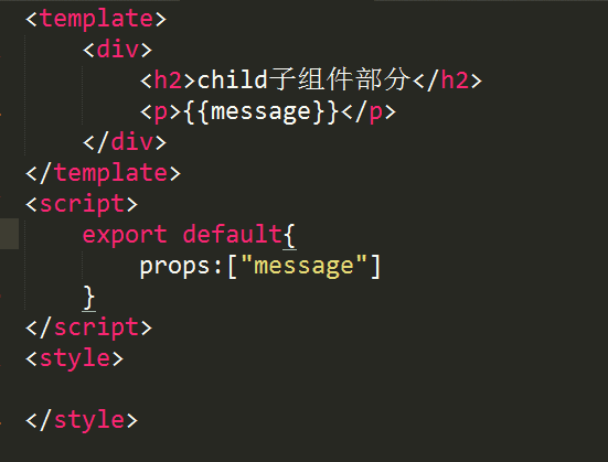 2.Child.vue的中创建props,然后创建一个名为message的属性