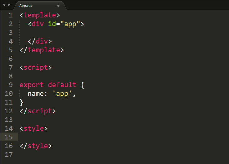 接着我们进入Demo,首先我们可以删除掉模板项目中src/components/Hello.vue,然后在App.vue中删除对于Hello子组件的注册和使用还有一些其他无关紧要的东西,此时的App.vue应为这样