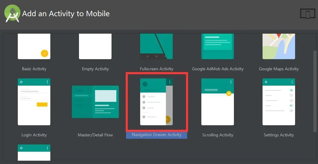 新建一个Activity,这里我们选择使用Android Studio提供的模板,选择NavgationDrawer Activity