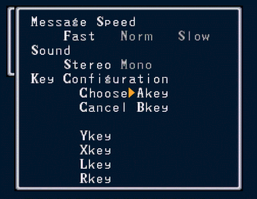 现在,我知道菜单导航不再是RPG游戏的主要关注点(虽然实际上它们有时还是会被人诟病),但是从游戏 Breath of Fire 中诞生的第一代菜单系统到现如今已经不再有任何价值。让人难以忍受的是这些菜单选项居然显示在游戏还没有开始之前,就是下面这样: