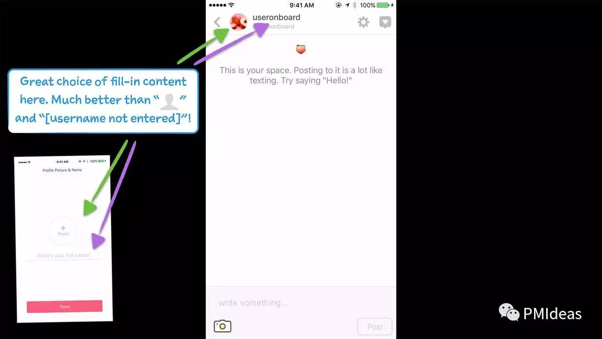 正如Samuel Hillock在他的“Peach’s user on boarding flow”一文中指出,这种方法要比给一个默认的轮廓头像、不提供默认用户名要好很多。