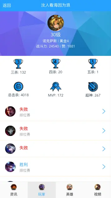 - 召唤师详情页(内含战绩列表)