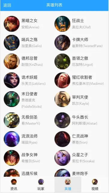 - 英雄列表页
