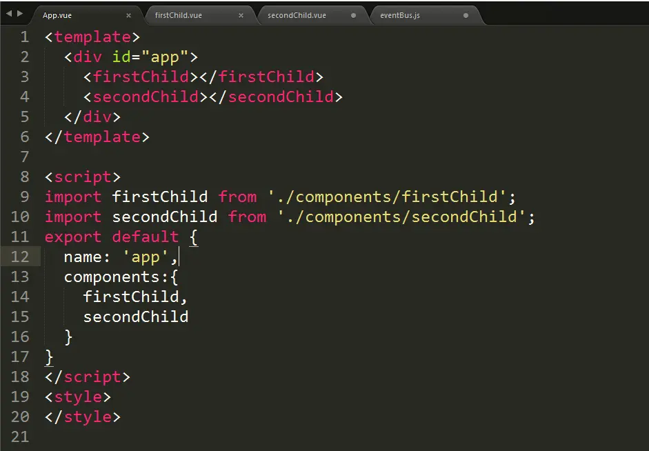 eventBus中我们只创建了一个新的Vue实例,以后它就承担起了组件之间通信的桥梁了,也就是中央事件总线。