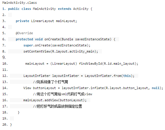1、我们向系统申请借来了一个LayoutInflater,即布局的打气筒;
