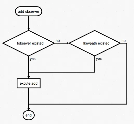 。为被观察对象增加一个map属性,存储所有的observer和keypath的对应关系。每次添加或者删除观察者的时候,都会先去检查observer的keypath是否已存在或者消失,在执行相当逻辑。避免重复添加或者删除。