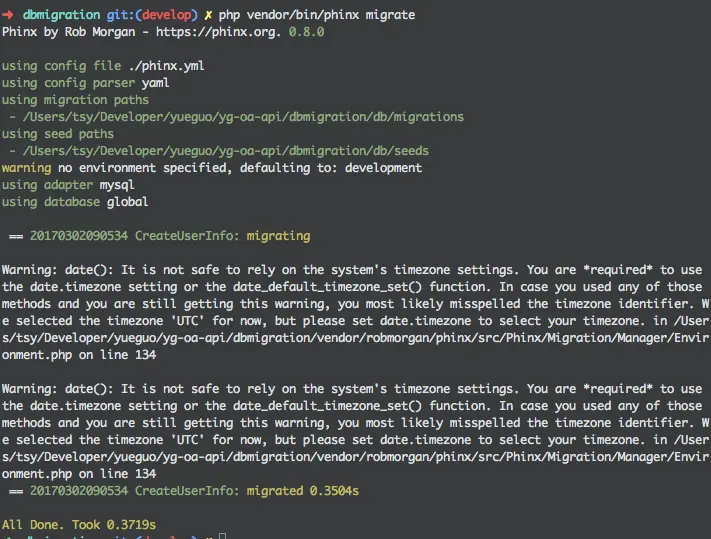 并且翻译了详细的中文文档到Gitbook,详见tsy12321.gitbooks.io/phinx-doc/c…