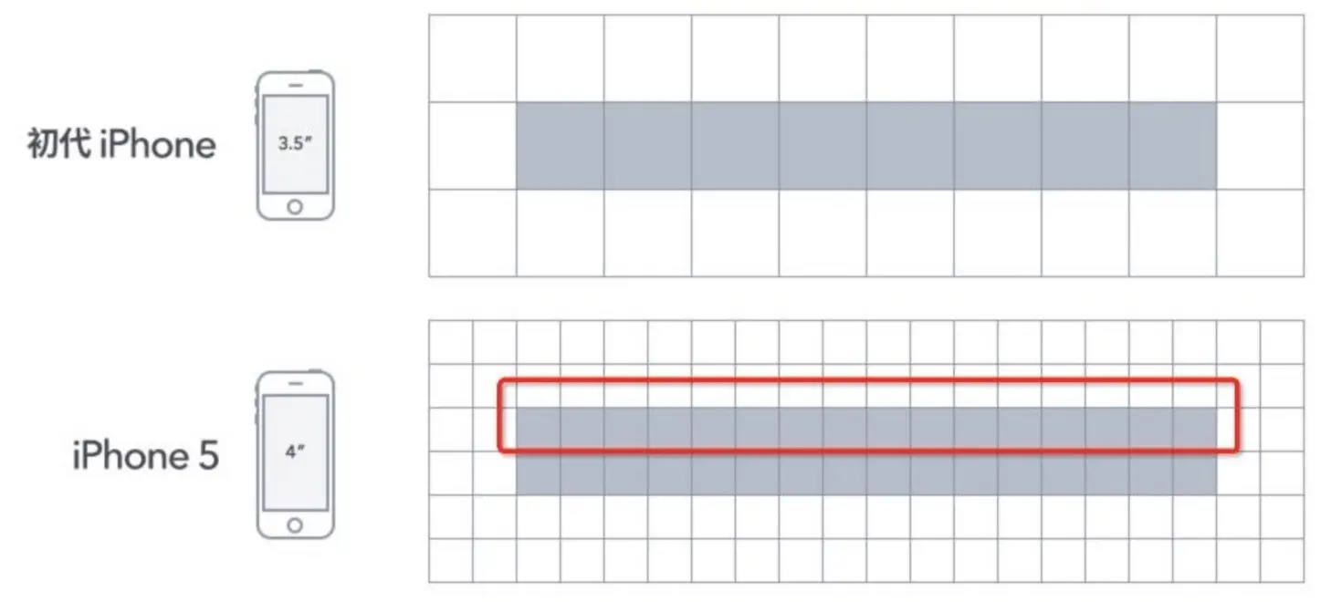 拿iphone5和初代iphone为例:若设置initial-scale=1,那么布局视口为320px,但是iphone5的物理像素宽为640px,那就代表了1个css像素包含了4个物理像素(2x2)。而初代iphone的布局视口和物理像素都为320px如图: