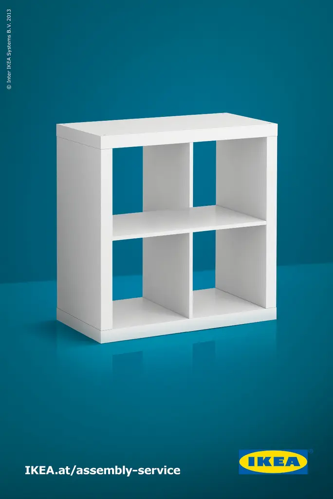 宜家这则广告的灵感来自于潘洛斯三角形,这是著名的“不可能”三角形。宜家通过在产品图像上的一点巧妙修改,创造出了与潘洛斯三角形类似的又一“不可能”,以此来表现“困难”和“复杂”的概念,这也是他们对自家组合家具产品的自嘲。