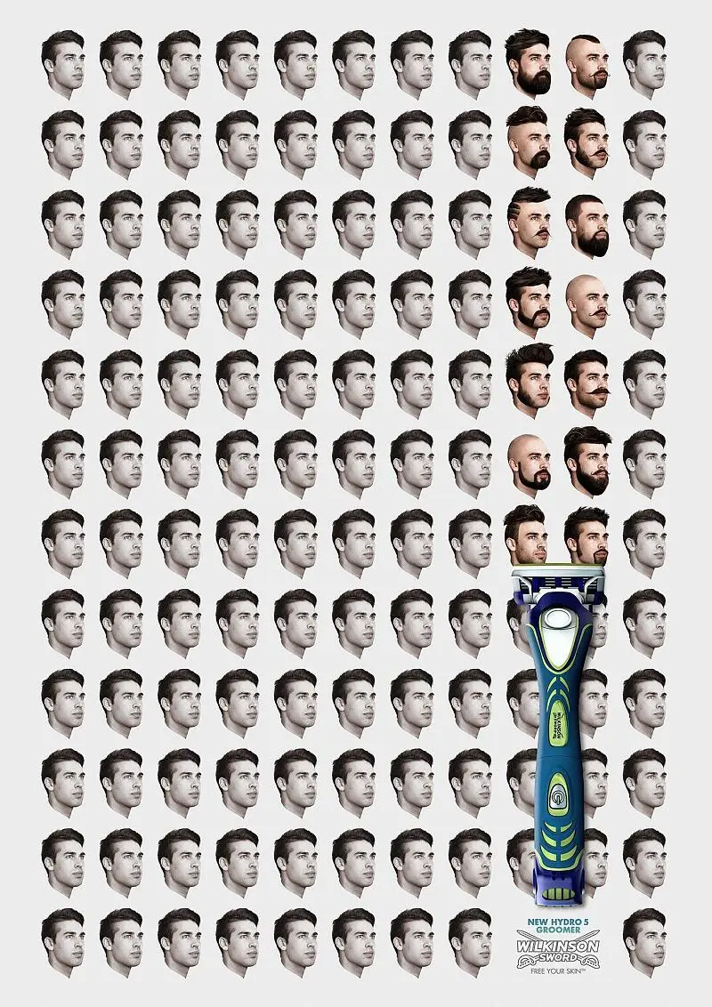 例如,Wilkinson Sword品牌的剃刀有一个非常广泛的目标市场。 他们的广告系列是一系列三个广告,每个广告都旨在吸引各种用户。 通过提供具有不同面部特征和可能看起来不错的发型的人,每个广告都能够针对范围广泛的人。