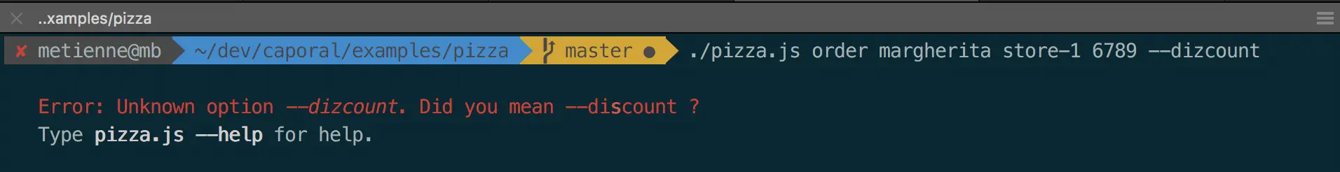 INT(orINTEGER): Check option looks like an int and cast it withparseInt()FLOAT: Will Check option looks like a float and cast it withparseFloat()BOOL(orBOOLEAN): Check for string like0,1,true,false,on,offand cast itLIST(orARRAY): Transform input to array by spliting it on commaREPEATABLE: Make the option repeatable, eg./mycli -f foo -f bar -f joe