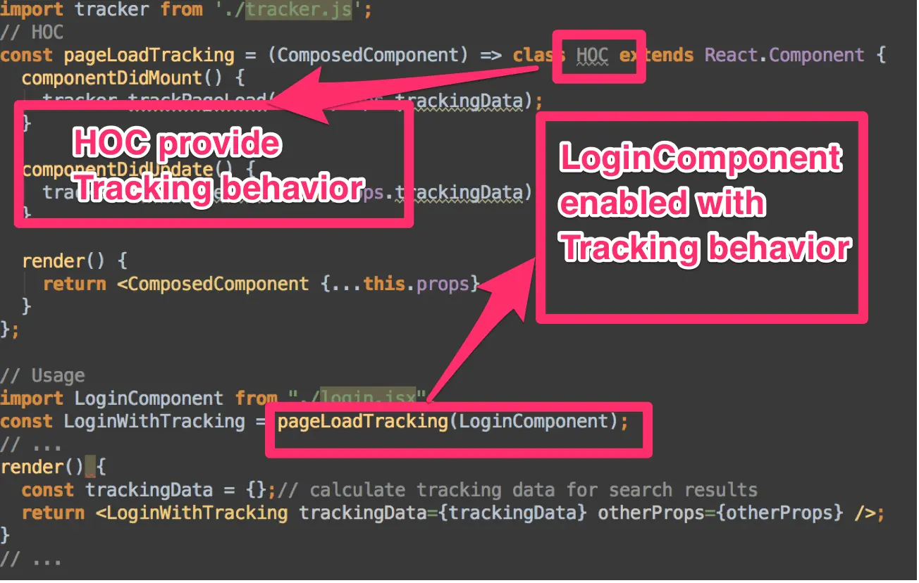 我们将会使用一个不同的例子来从面向切面编程的角度来解决问题。面向切面编程(AOP)是旨在通过允许分离问题的切面来增加模块性的一个编程范式。在这个例子中我们将会试着对 React 组件做一个横切面概念的 "追踪分析" 。那么如何来解决这个问题呢?