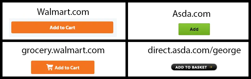 基于服务地区的不同,不同的品牌有不同的内容需求。一个超级简单的例子就是,walmart.com 和 walmart.ca 显示 "加入购物车" 的地方,asda.com 只显示 "加入",而我们的 George clothing 品牌显示 "加入篮子",grocery.walmart.com 会显示一个图标。