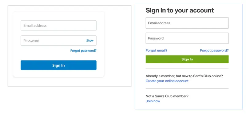 现在,在我们深入之前我想先来解释一个问题 "对于这些看起来并不相同的 UI,我们为什么不重新做一个而是尽可能的让它们适用于多个品牌呢?",从长期来讲(短期也是同理)即使这些组件看起来并不相同,但是基于一个已经存在的组件做拓展所花费的努力仍然要小于重新做一个。拿登录来说,因为你需要特殊的安全和隐私需求所以你必须要注意很多地方例如离开站点后哪些是不可见的,然后还要保证你拥有自动数据采集许可,而且还要支持所有的浏览器和移动端,处理错误,编写表单的自动填充(记住,我们还共享了 redux )。在组件初始化的时候除了这个盒子以外的所有东西都需要被复制一遍。在未来还有可能发生例如 samsclub 需要优化想要 "显示密码" 或者 walmart 想要一个注册区域的需求。从本质上讲,只要一个团队修复了 bug ,做了 a/b 测试或者改进了表单,那么这些新增的部分都会被分享到所有的租户和品牌。
