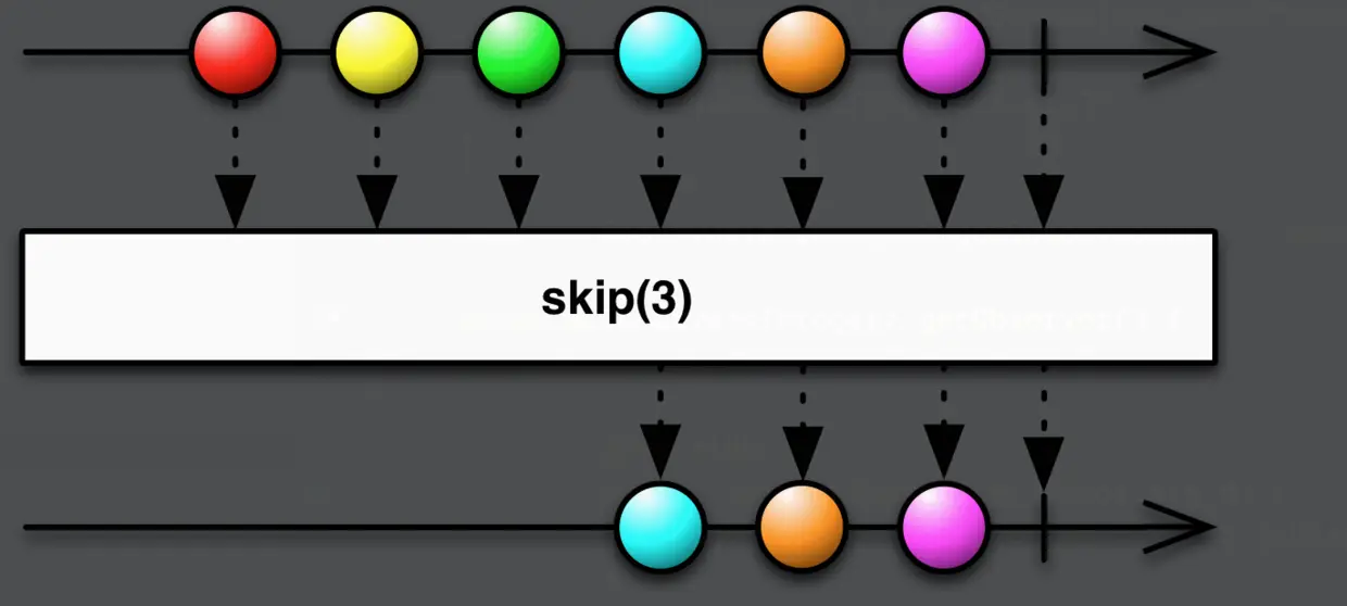 .subscribe(getObserver());skip比较简单,会跳过前几个数据,具体可以通过参数设置,demo中是跳过前三个数据。