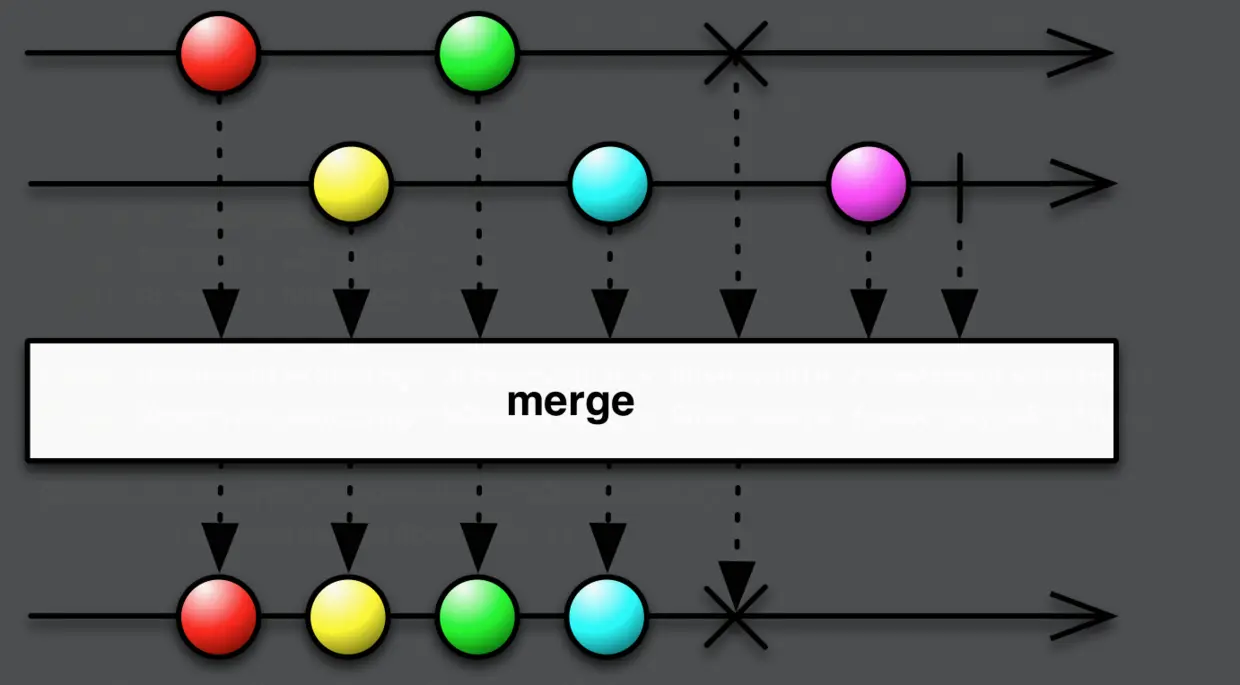 merge 与concat不同的是把两个 Observable的数据合成一列数据,就像是从一个Observable emit,但是顺序不一定。