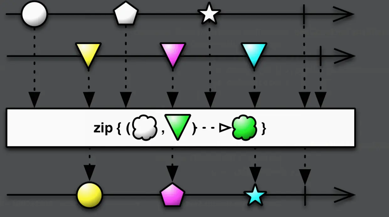 }zip对两个Observable的数据进行BiFunction操作,之后再emit出去。demo中getCricketFansObservable 获取到喜欢cricket 的人,getFootballFansObservable获取到喜欢football的人,最终经过BiFunction之后获取到喜欢两项运动的人。