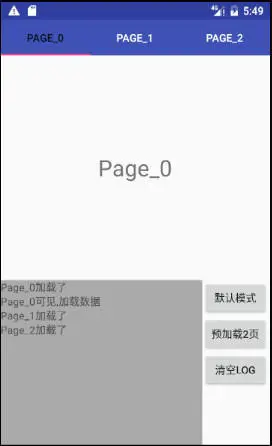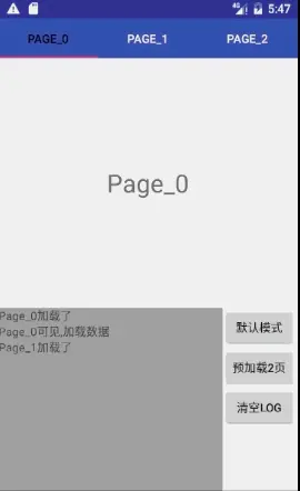 ViewPager控件有个特有的预加载机制,即默认情况下当前页面左右两侧的1个页面会被加载,以方便用户滑动切换到相邻的界面时,可以更加顺畅的显示出来.