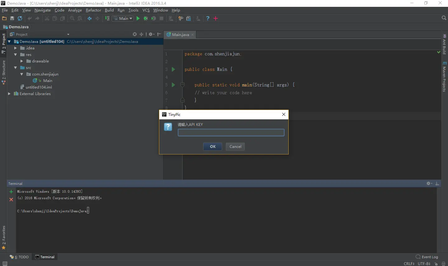 String api = Messages.showInputDialog(project, "请输入API KEY", "TinyPic", Messages.getQuestionIcon());