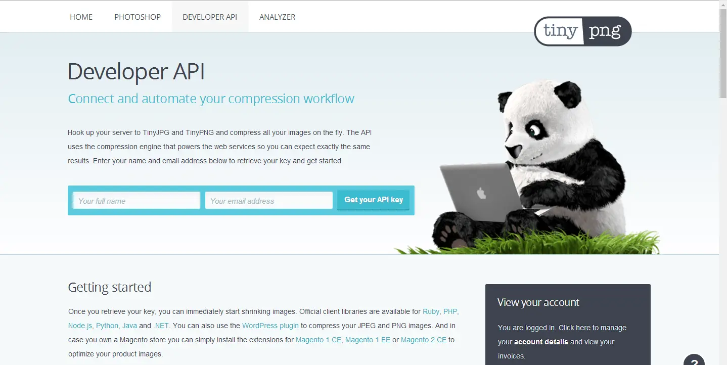 接下来就要用到TinyPNG这个网站提供的API了,真正的压缩功能就是他们提供的 tinypng.com/developers/…