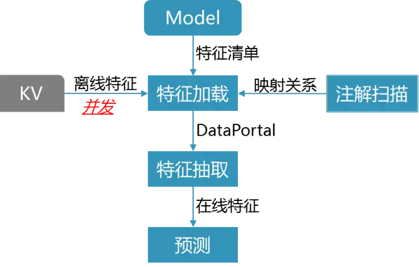 特征加载:针对模型所需特征列表,取得对应的Domain对象。这步通过调用特征获取实现。
