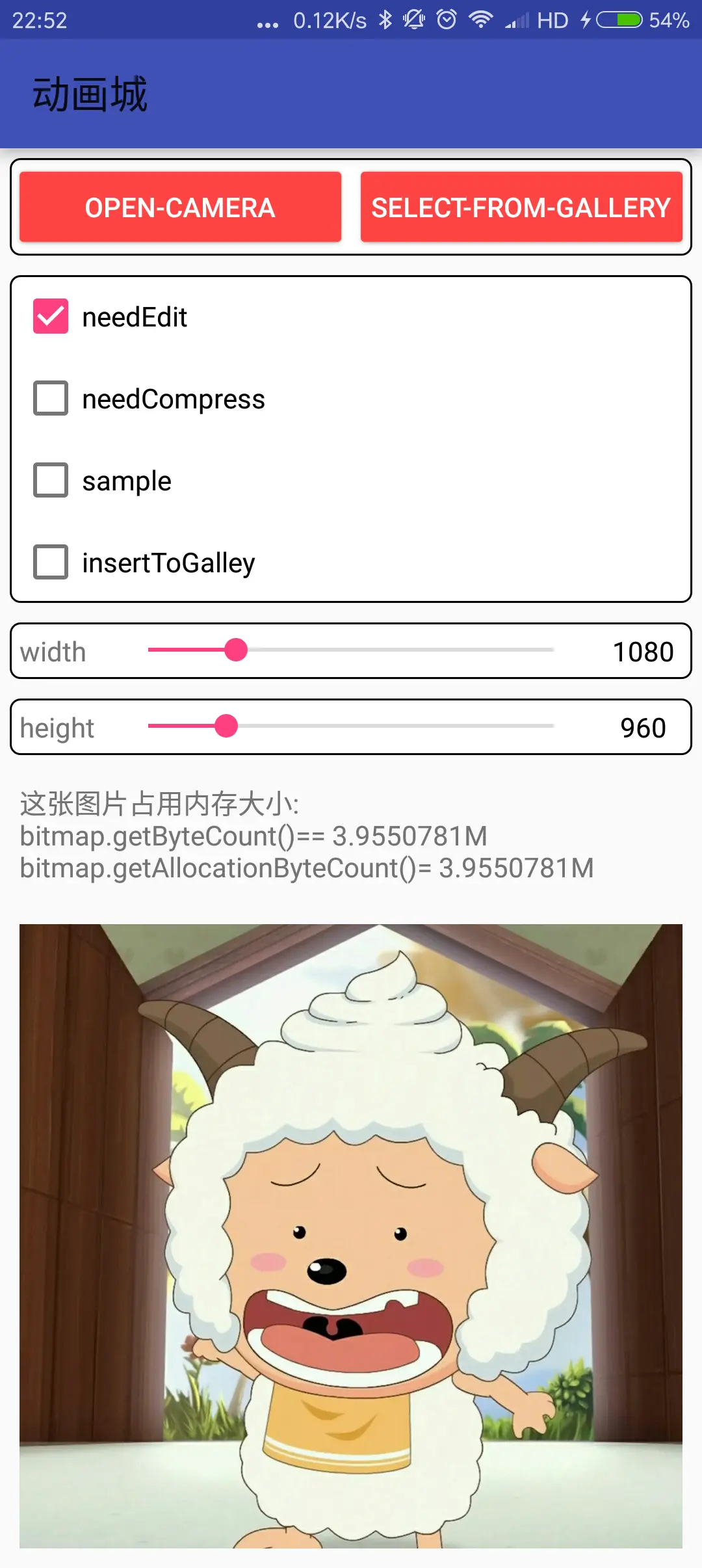 难道是compress方法没生效吗?其实不然,至少从UI上看compress的确生效了, 当compressRate=0时,懒羊羊的图片显示到ImageView上时已经非常不清晰了,失真非常严重。那么到底是为什么呢?