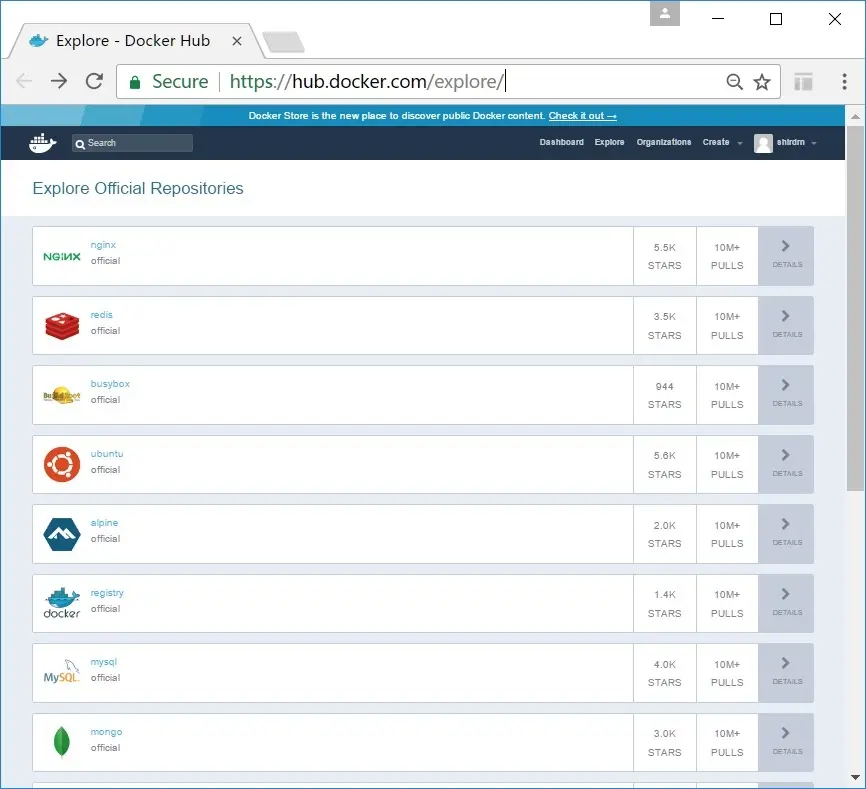 Registry是一个服务,它负责管理一个或多个Repository(仓库),而Repository还包含公共仓库(Public Repository)和私有仓库(Private Repository)。默认的Registry是Docker Hub,它管理了按照不同用途分类的很多公共仓库,任何人都可以到Docker Hub上查找自己需要的Image,或者可以使用docker search命令来搜索对应Image,例如我们查询关键词hadoop,示例命令如下所示: