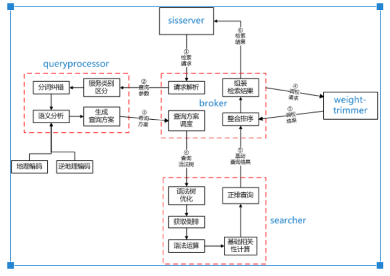 接收和解析前端下发的查询请求,结合query processor 语义分析的结果,调度整个检索流程,返回检索结果给前端。